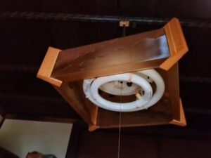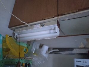 たとえば、先日は、1軒で設置されているこれらの蛍光灯器具をLED照明に入れ替えいたしました。